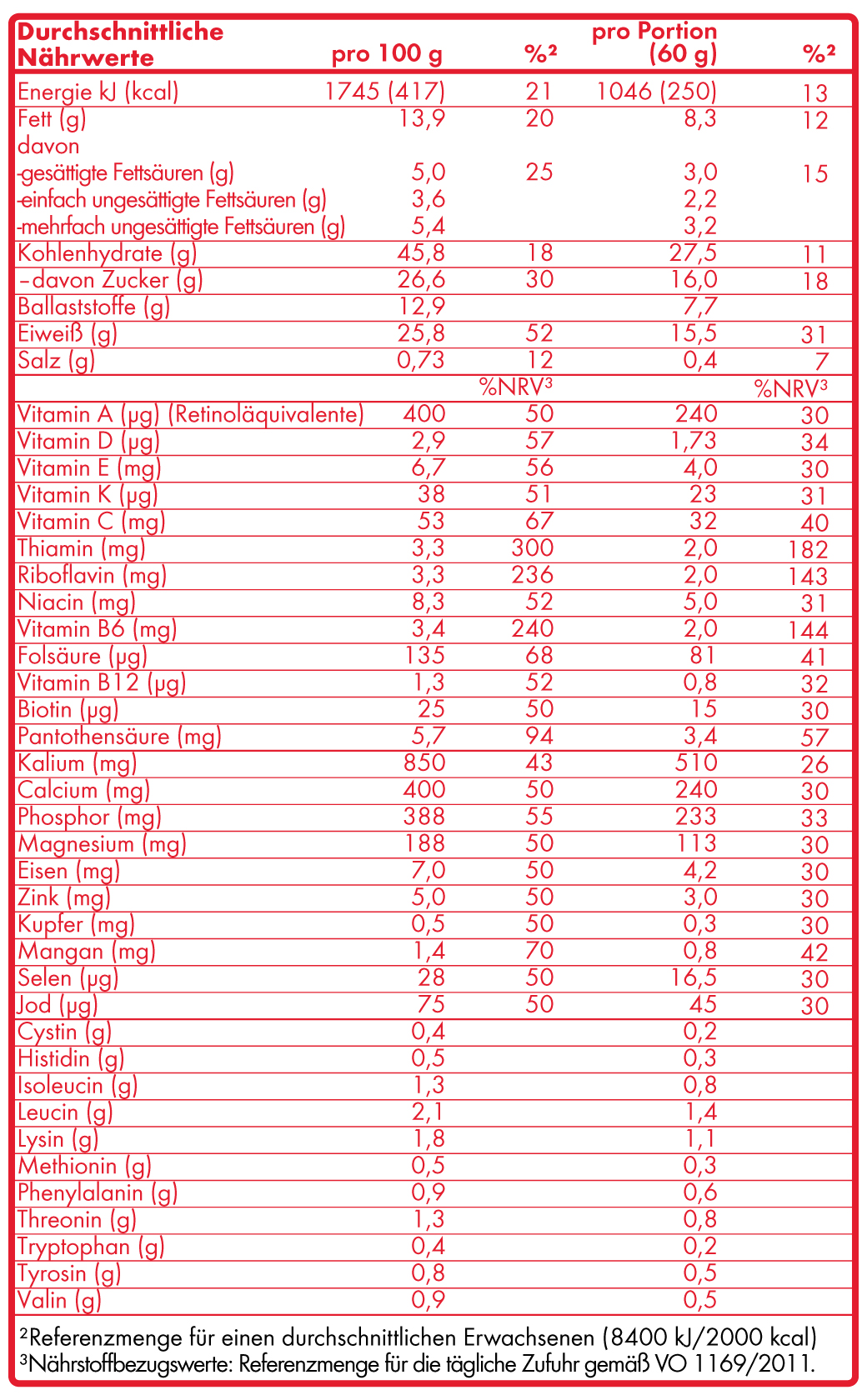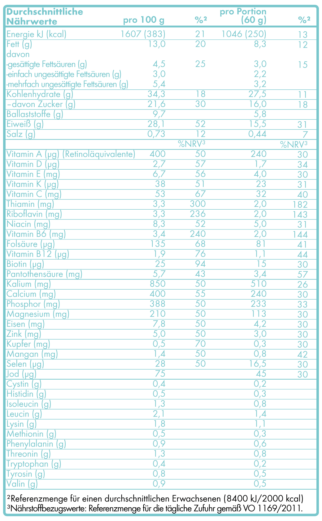 ³ Nutrient Reference Value – Prozent der empfohlenen Referenzmenge gemäß Verordnung (EG) 1169/2011